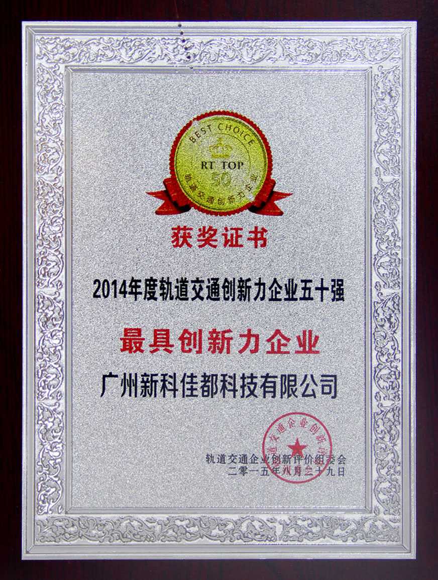 2015年8月29日,「RT TOP 50」2014轨道交通创新力企业50强评选活动颁奖盛典在上海淳大万丽酒店隆重开幕,z6.com科技以综合实力和产品创新力脱颖而出荣获创新企业50强称号。另外,其自主研发的大型综合监控系统软件平台(MICS)还被评为2014年度轨道交通创新产品奖。